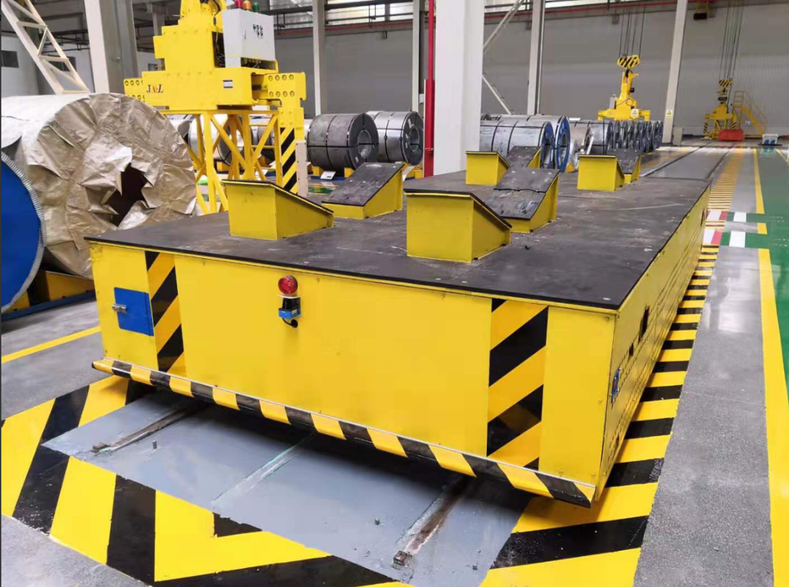 蕪湖某鋼鐵客戶,貴公司主要是做鋼卷板材加工行業(yè),在我們公司訂購(gòu)一臺(tái)50噸的低壓軌道供電平車(chē),該平車(chē)主要應(yīng)用于鋼卷的搬運(yùn),以下是平車(chē)的基本參數(shù):