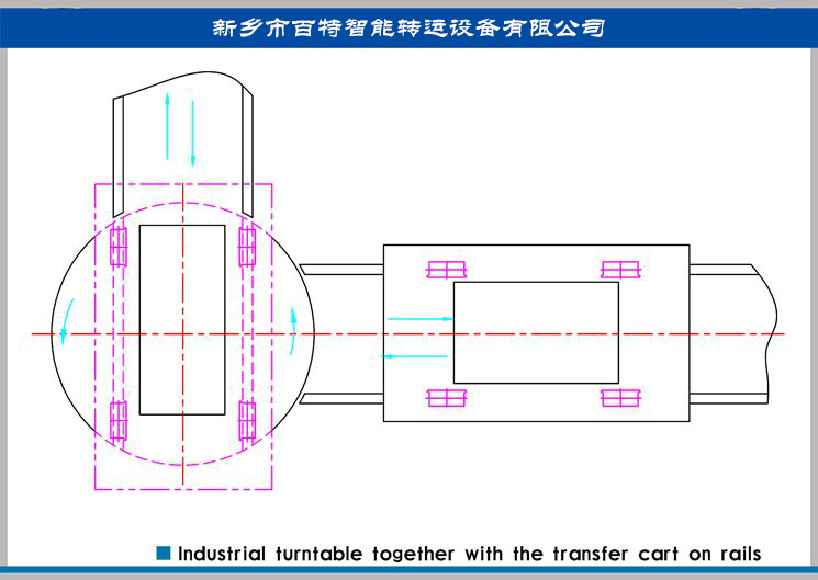 應(yīng)用:適用于兩條軌道十字交叉,且需要換軌的場合,多需要車間內(nèi)部大型工件的轉(zhuǎn)運。廠房門與車間縱深垂直的場合。